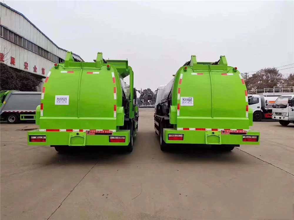 3、垃圾箱与后门总成之间密封性好  后门液压开启,液压锁紧,垃圾箱与后门总成之间采用特制加强型橡胶条密封,密封性好,杜绝了二次污染。