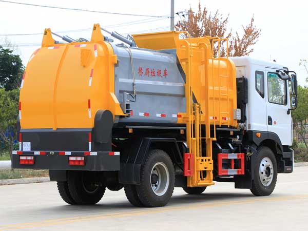 5、密闭排料(选装):不用后门打开,液态垃圾可以通过管道路排出,固态垃圾可以通过旋转绞笼挤压排放出车厢。