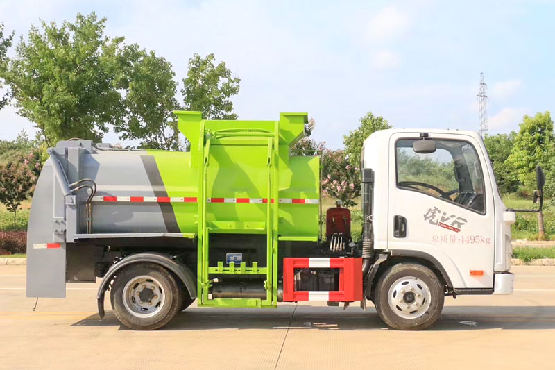(5)提升机挂240L标准塑料垃圾桶。进料口盖液压开关。