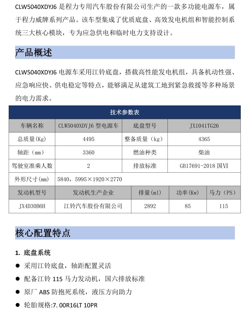 CLW5040XDYJ6电源车