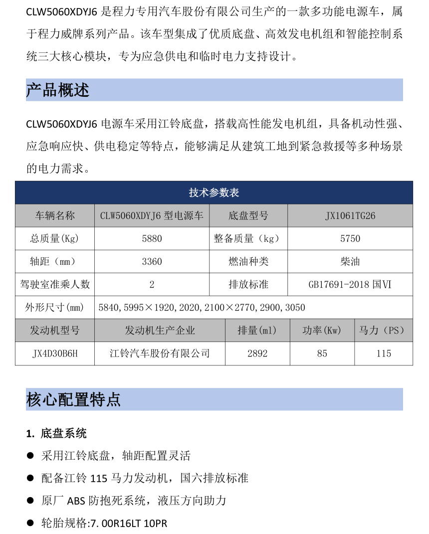 CLW5060XDYJ6电源车