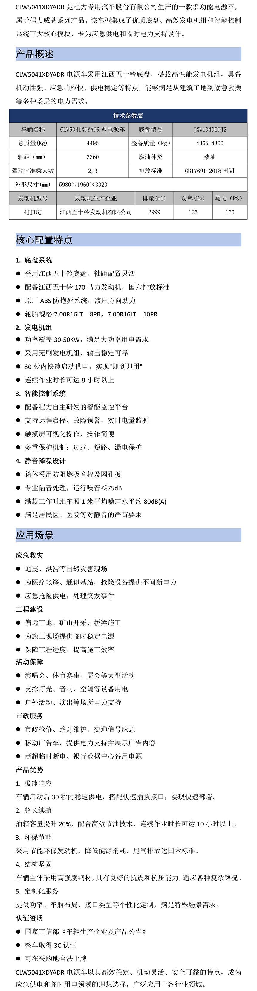 CLW5041XDYADR电源车