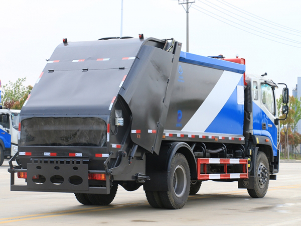 压缩式垃圾车工作装置:不同用户可根据不同的垃圾搜集方式,选装不同的翻桶(斗)机构:翻标准垃圾铁桶ZBT59003-88(300L)、塑料垃圾桶(240L)、塑料垃圾桶(660L)、随车小垃圾斗(800L)、密封遮盖式垃圾斗(1400L)、摆臂垃圾斗(3000L)。