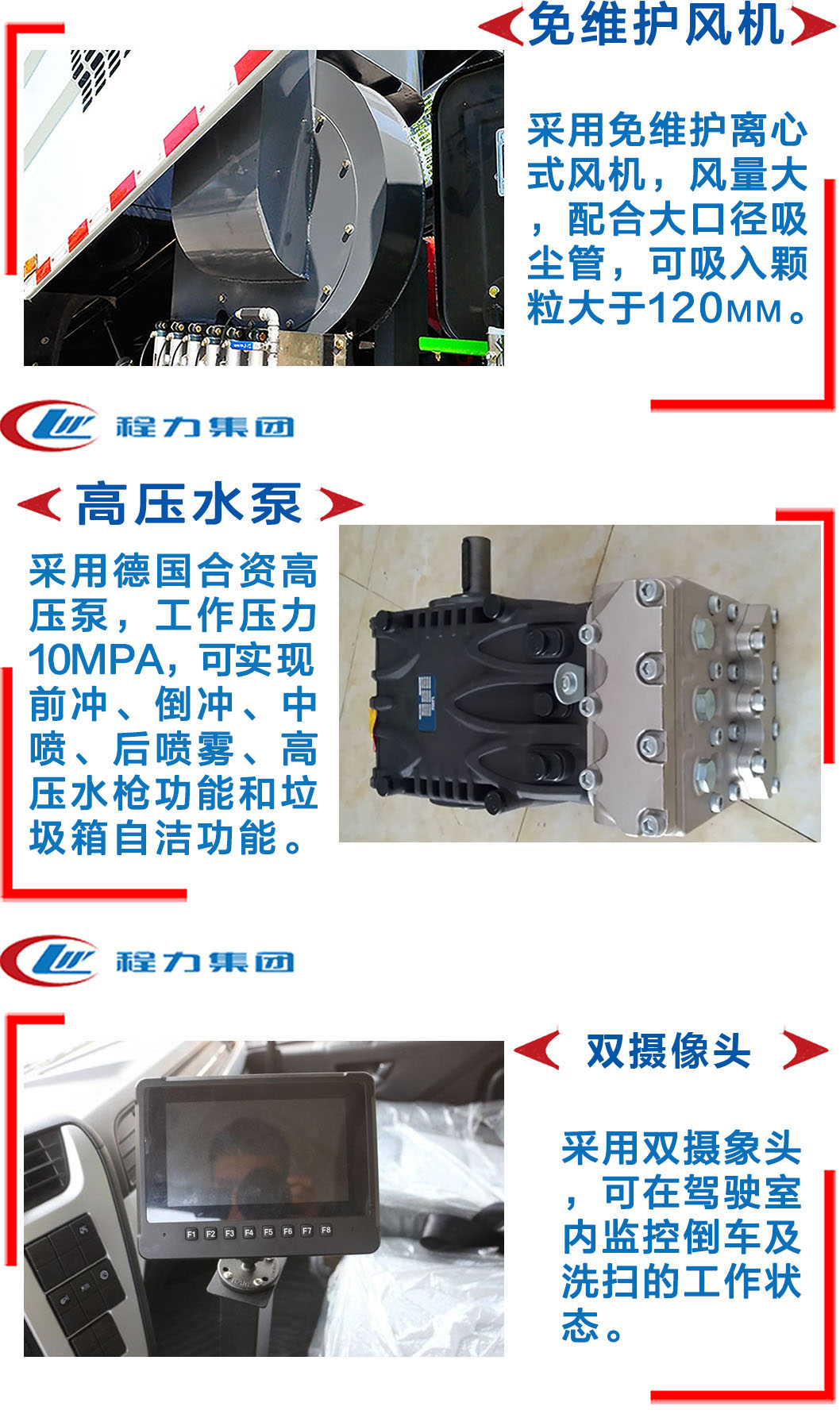| 扫盘降尘系统 | 电动水泵,洒水喷嘴。与高压清洗系统共水滤、水箱等 | ||