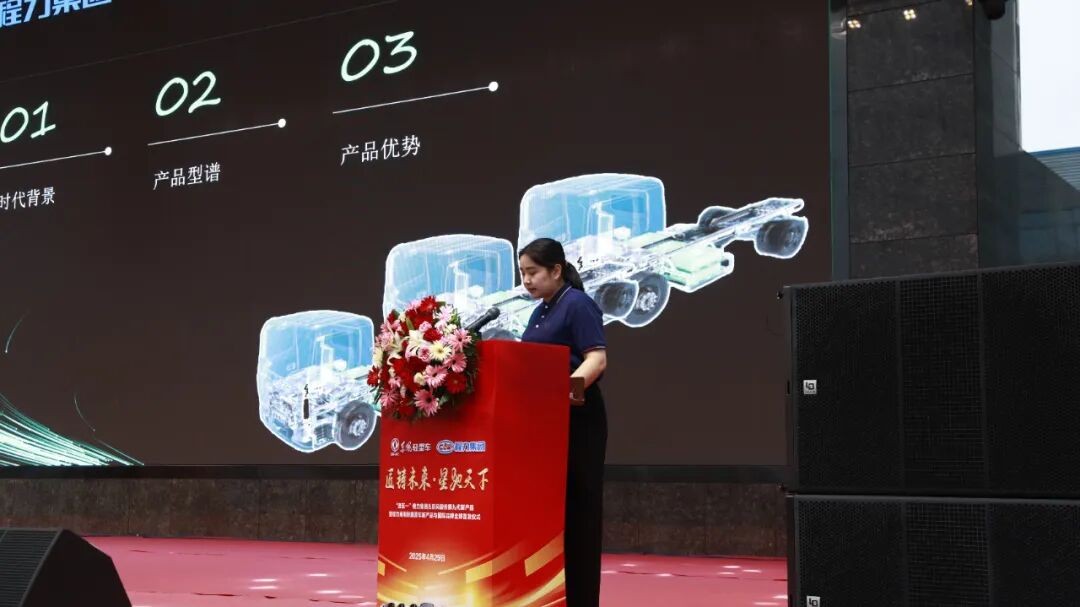 其次,程力商用车(新能源)汽车制造有限公司总经理李晓蔓,上台宣讲了本次发布的三款程力“星驰”新能源扫路车、洗扫车、压缩垃圾车,以及二款新能源轻卡、中重卡底盘的硬核实力与产品亮点。