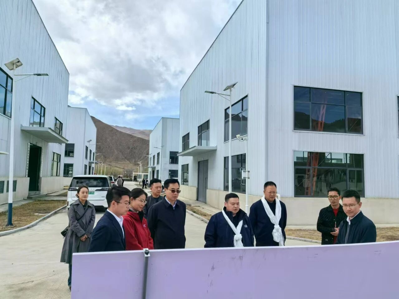 座谈会及签约仪式结束后,宾主双方对项目选址进行了现场查勘,当地少数民族工作人员为程力汽车集团董事长程阿罗等一行来宾,献上了最圣洁的哈达,以表达程力对援藏事业大力支持的感恩之情。