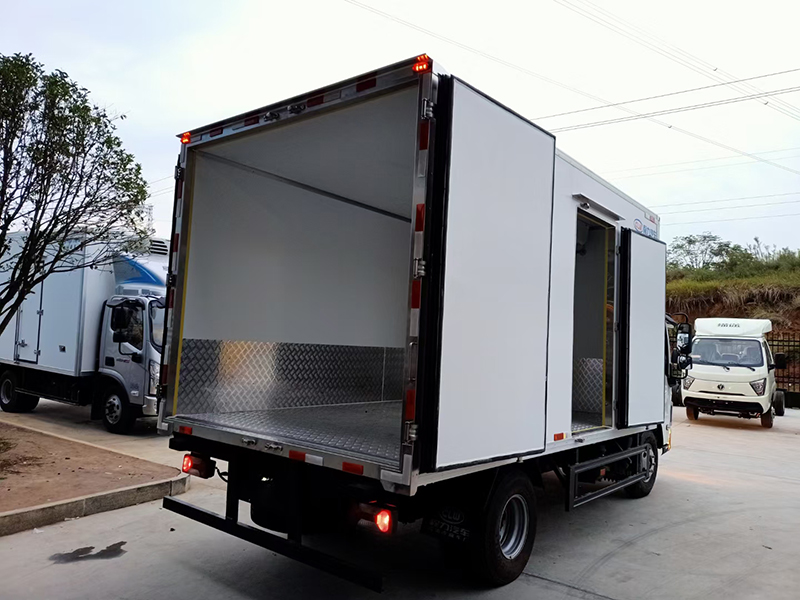 厢体材质:货箱尺寸4090x2080x2100(不超重),厢体内外采用玻璃钢材质,中间8cm聚氨酯发泡保温层,厢体底板材质采用花纹防滑铝底板,配不锈钢门锁件,其余标配。选装零下五度至零下十五度制冷机组。