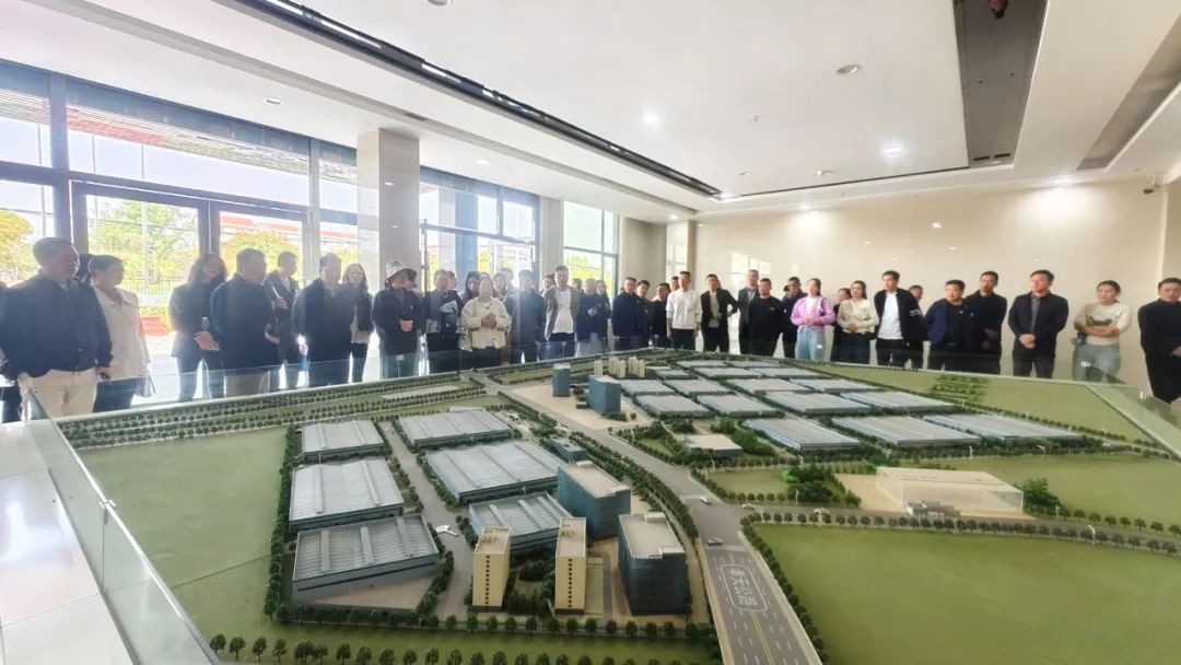 图九(上):程力重工智慧绿色工厂沙盘模型图前,客商云集宾客迎门。